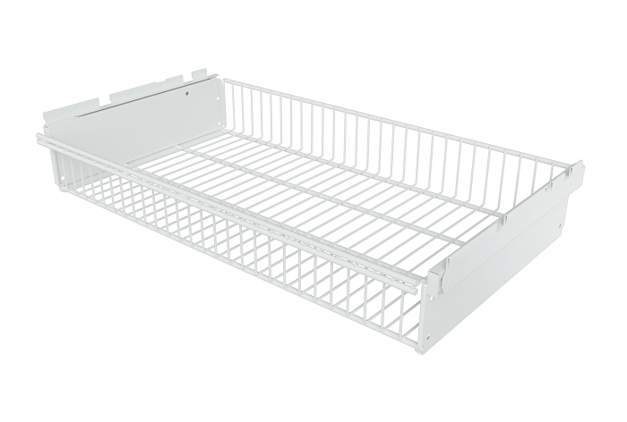 Корзина выдвижная Титан GS предназначена для установки на гардеробную систему. Изготовлена из проволоки, такой же как и сетчатые полки Титан GS. Учитывая крупноячеистую структуру, выдвижные корзины являются отличным вариантом для хранения одежды, поскольку обеспечивается отличная вентиляция вещей. Корзина выдерживает до 35 кг при ее равномерном распределении. Устанавливается на кронштейны полок Титан GS 435 (в комплект не входят). Покрытие: порошково-полимерное, гипоаллергенное и устойчивое к механическому воздействию. Цвет: белый Ral 9016