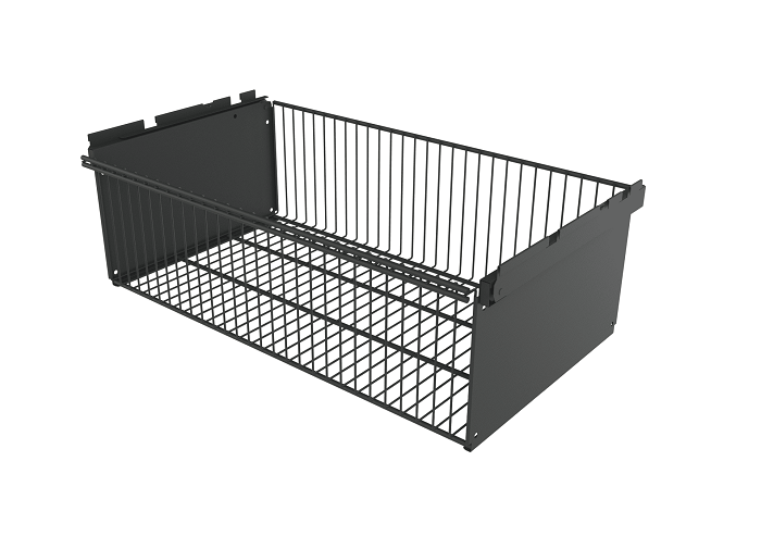 Корзина выдвижная Титан GS предназначена для установки на гардеробную систему. Изготовлена из проволоки, такой же как и сетчатые полки Титан GS. Учитывая крупноячеистую структуру, выдвижные корзины являются отличным вариантом для хранения одежды, поскольку обеспечивается отличная вентиляция вещей. Корзина выдерживает до 35 кг при ее равномерном распределении. Устанавливается на кронштейны полок Титан GS 435 (в комплект не входят). Покрытие: порошково-полимерное, гипоаллергенное и устойчивое к механическому воздействию. Цвет: черный