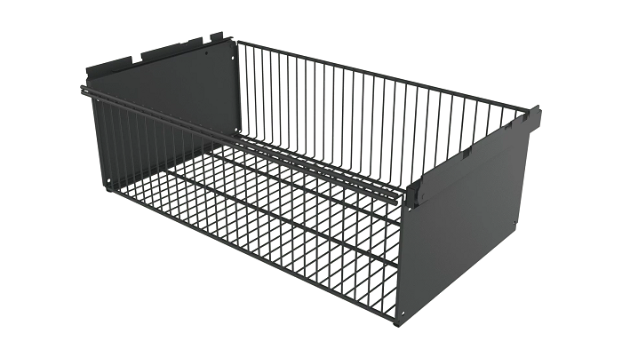 Корзина выдвижная Титан GS предназначена для установки на гардеробную систему. Изготовлена из проволоки, такой же как и сетчатые полки Титан GS. Учитывая крупноячеистую структуру, выдвижные корзины являются отличным вариантом для хранения одежды, поскольку обеспечивается отличная вентиляция вещей. Корзина выдерживает до 35 кг при ее равномерном распределении. Устанавливается на кронштейны полок Титан GS (в комплект не входят). Покрытие: порошково-полимерное, гипоаллергенное и устойчивое к механическому воздействию. Цвет: черный