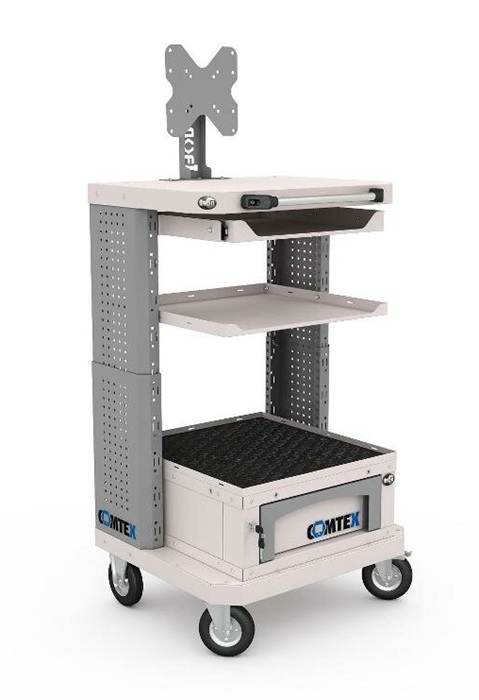 Дополнительно на тележку можно установить: выдвижную полку Comtex, выдвижной ящик Comtex, кронштейн для монитора, кронштейны для RACK модуля, цоколь для тумбы Comtex, лоток для тумбы/тележки Comtex, карман для документов А4 и другие аксессуары.