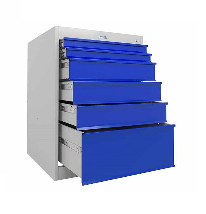 Цвет корпус - серый Ral 7038, ящики и двери тумб - синий Ral 5002