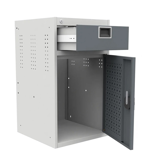 Выдерживает равномерно-распределенную нагрузку на верстак - 1000 кг, на тумбу - 300 кг, на полку - 60 кг, на выдвижной ящик -30 кг, на перфорированный экран - 50 кг.