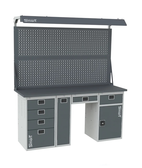 Дополнительно на верстак можно установить: аксессуары на экран SMART, подвесной ящик Smart, поменять вид тумб, а также возможна установка системы мастер ключ
